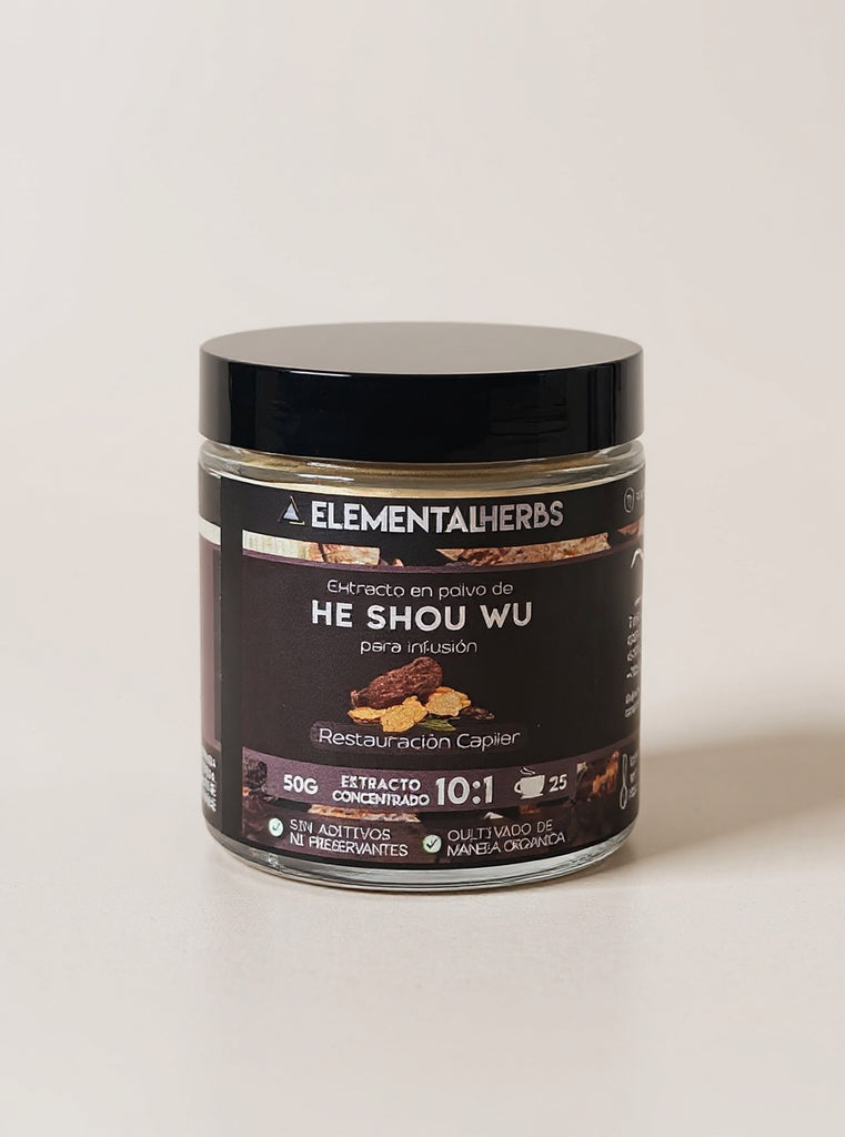 He Shou Wu es una de las raíces más veneradas dentro del herbalismo chino. Su nombre significa literalmente “hombre de cabello negro”, en referencia a su reputación como tónico rejuvenecedor que restaura el color, brillo y vitalidad del cabello. Tradicionalmente se ha utilizado para nutrir la sangre, fortalecer los riñones y apoyar la longevidad.